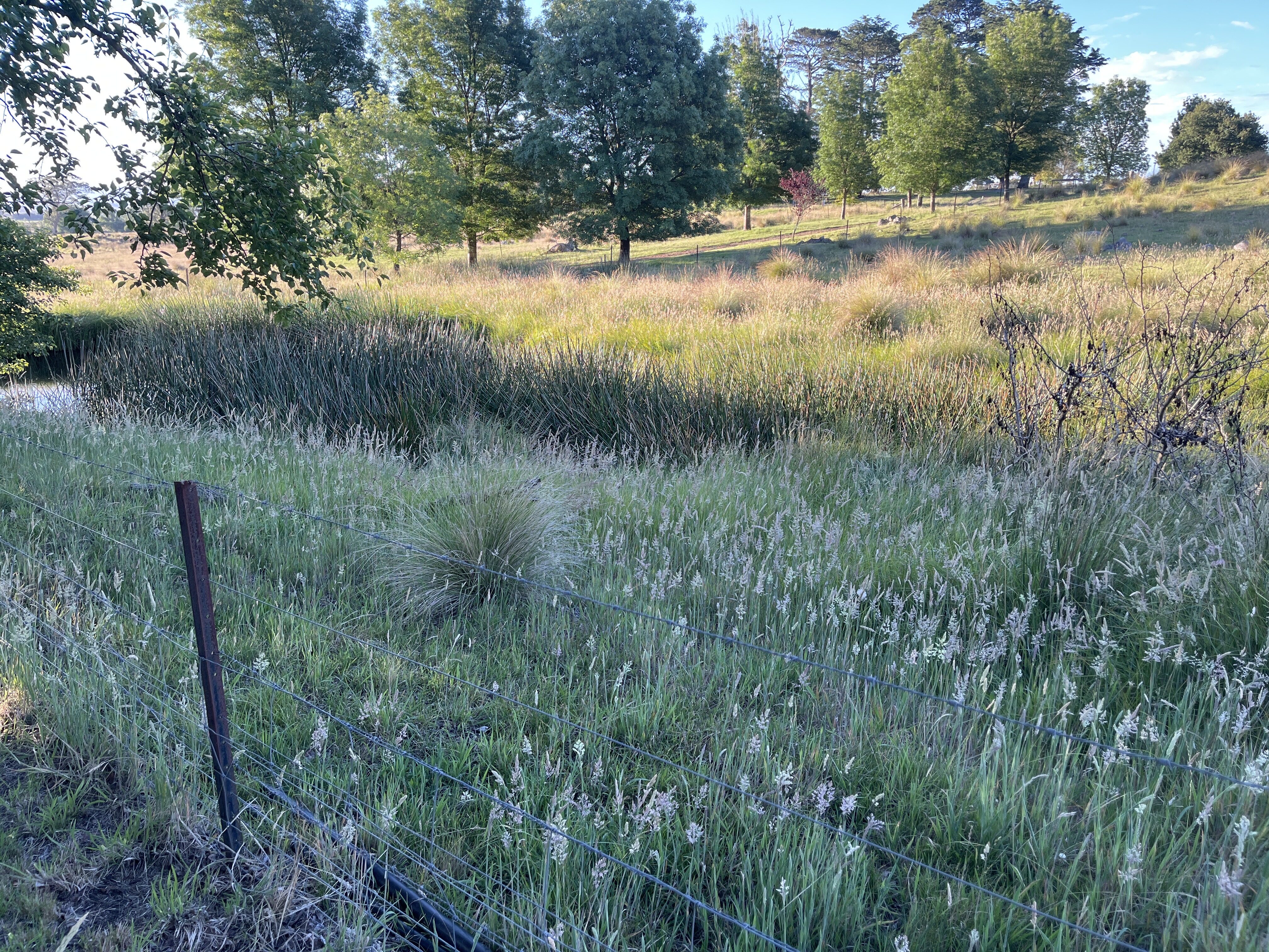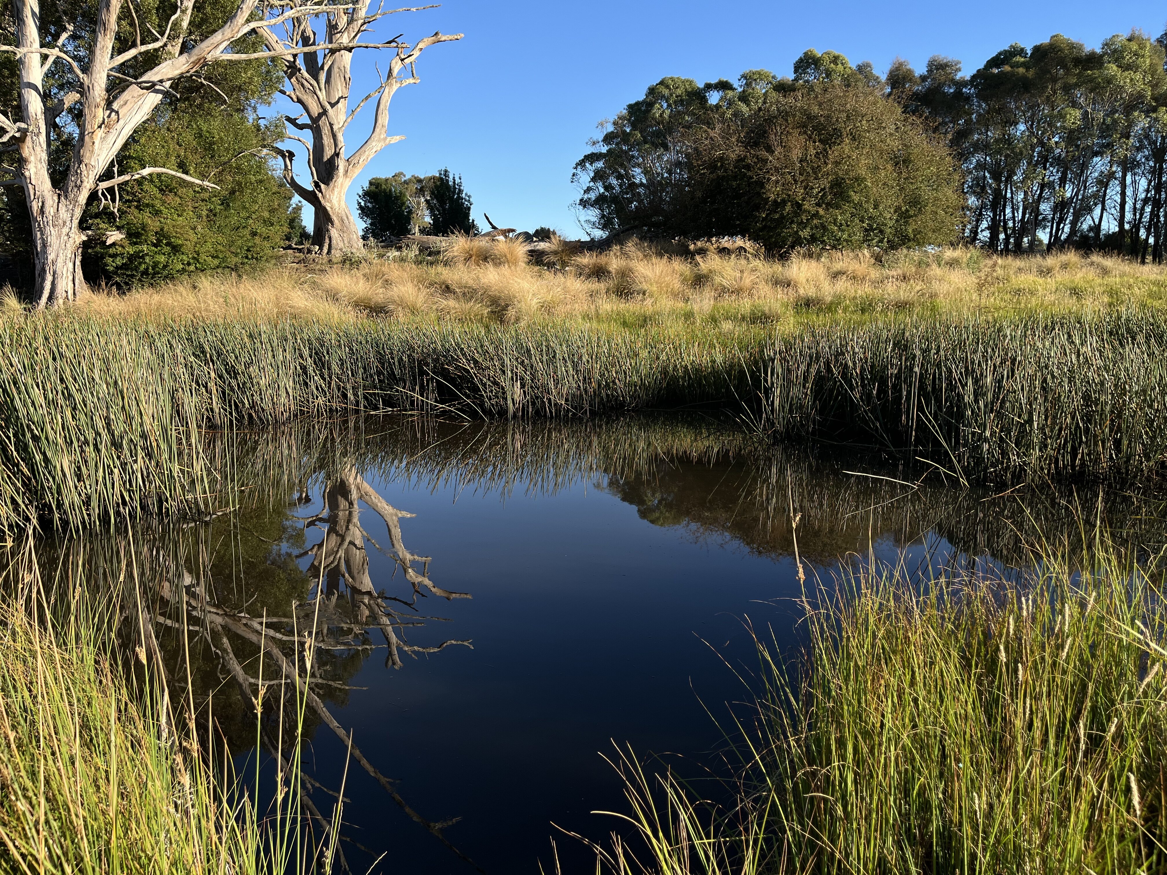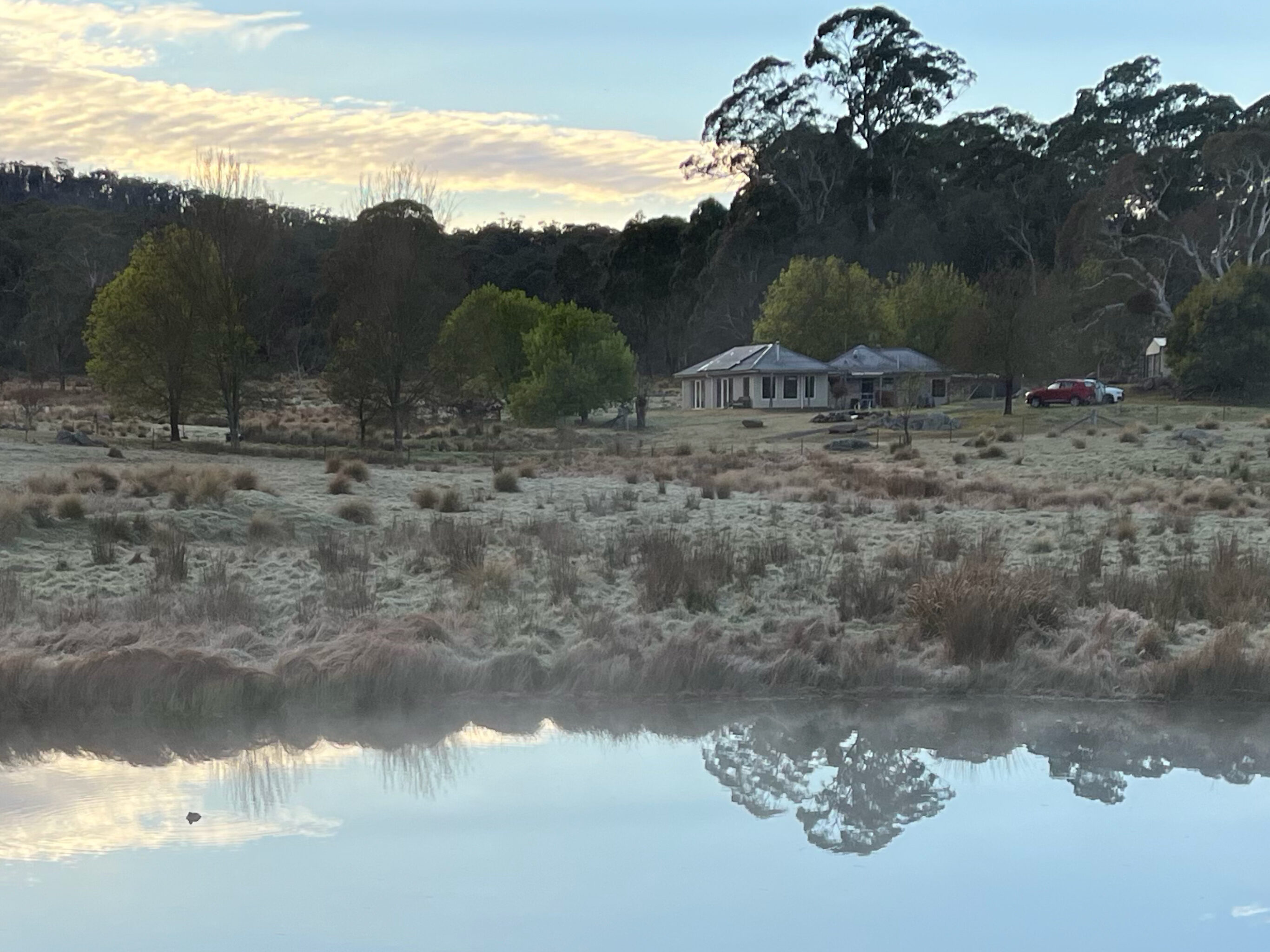 The farm is at the very beginning of conversion to biodynamics organics. I have done a Permaculture Design Course and am about to embark on Biodynamic training. The first projects are soil sampling, mapping and weed removal – mainly tussocks. Digging out tussocks for an hour I reckon should count as 2 hours ! There is a small heritage orchard that needs pruning. Cows that need grooming and company – yes they are herd animals and love company. Small dams and ponds where revegetation and transplanting native reeds and grasses to other areas will help speed up the rehabilitation of farm dams. A small vegie patch is thriving at the moment and it is growing little by little as I learn the ins and outs of cool temperature frosty climate. We will be applying Biodynamic sprays by back pack containers and hand pumps and collecting cow pats to make it ourselves.